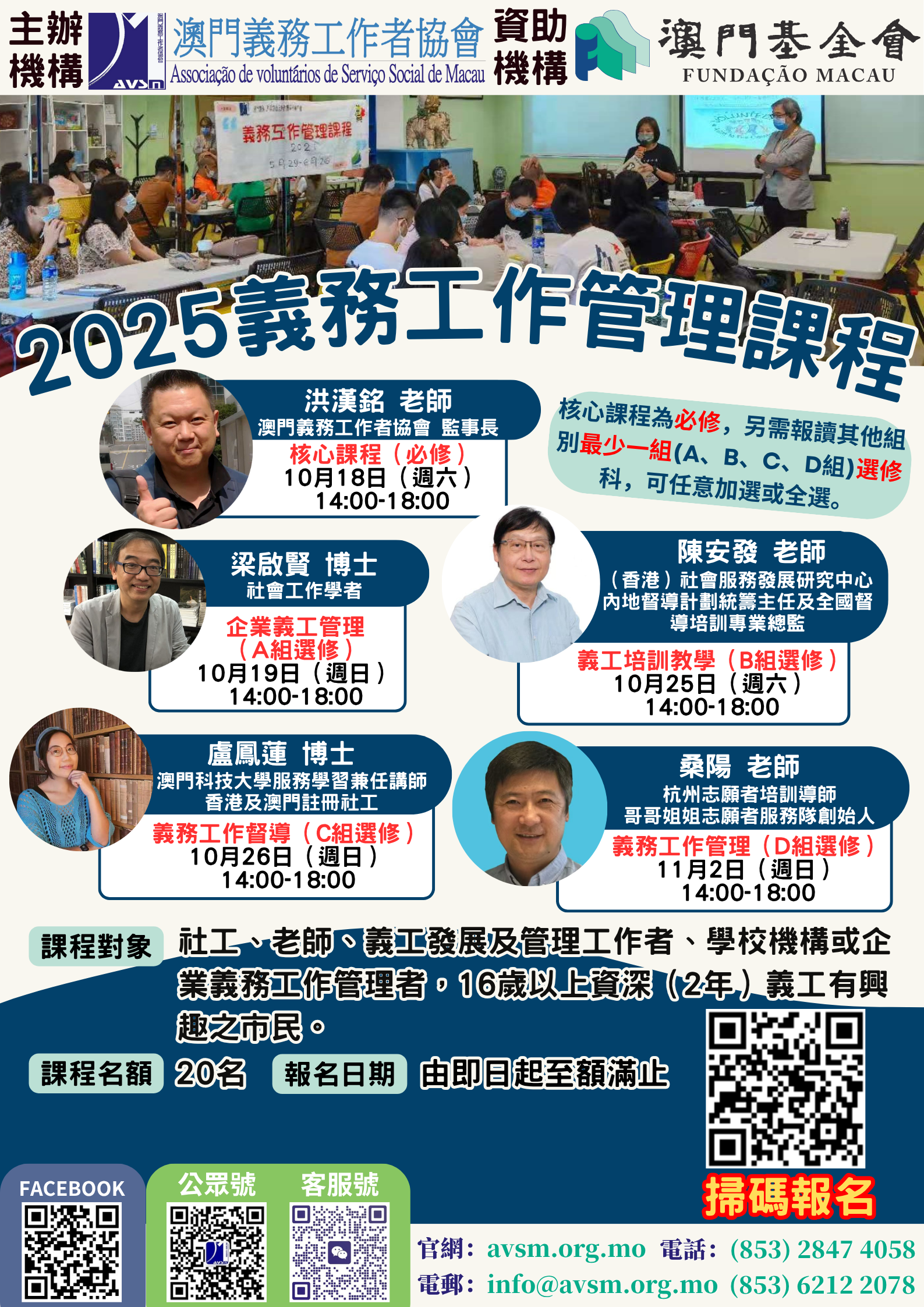 🎯 無論你是希望系統學習義工知識,還是提升團隊管理能力,這個課程都將為你提供專業的成長平台!立即報名,攜手推動澳門義工服務專業化發展!