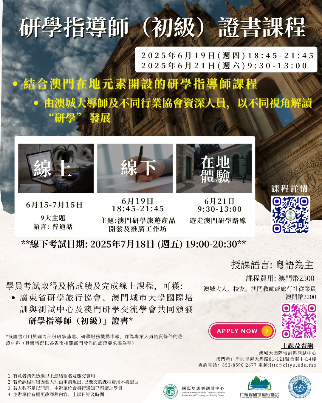 線下面授課:2025年6月19日,星期四,18:45-21:45及