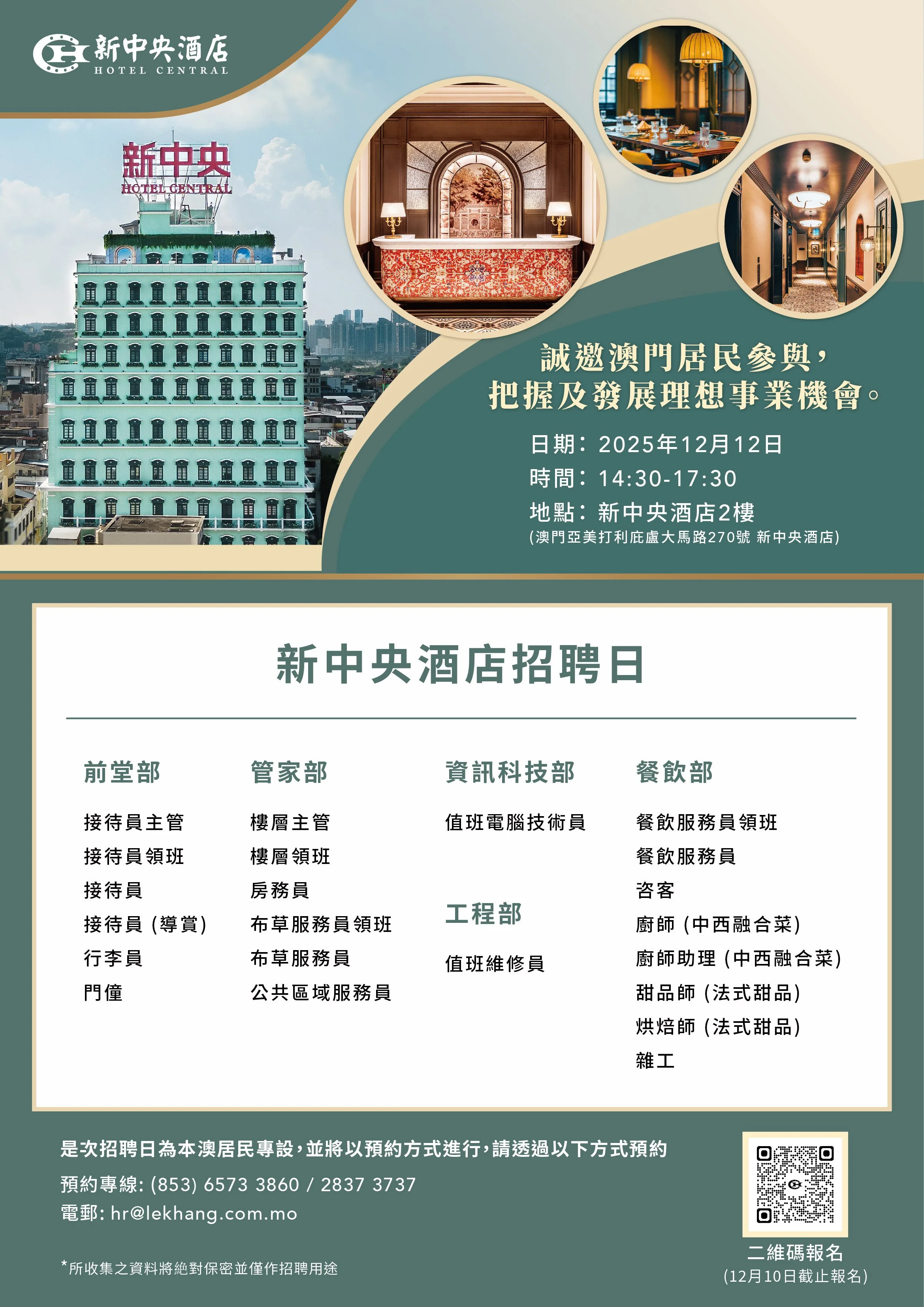 Please submit your detailed resume to hr.mfm@plaza-network.com. The personal data provided is to be used only for the purpose of evaluating and assessing the suitability of applicant for the post by Plaza Premium Lounge Macau, all data are treated as strictly confidential.