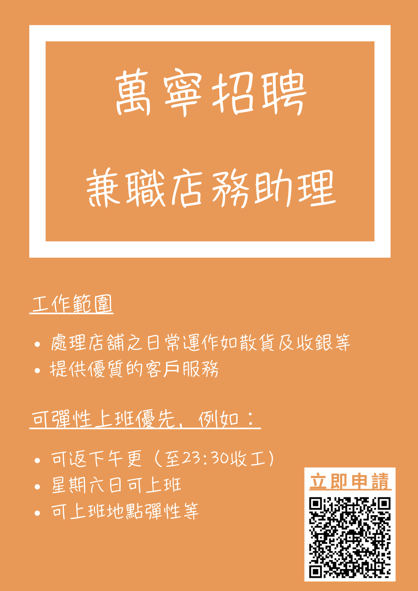 兼職店務員 Part Time Sales Assistant