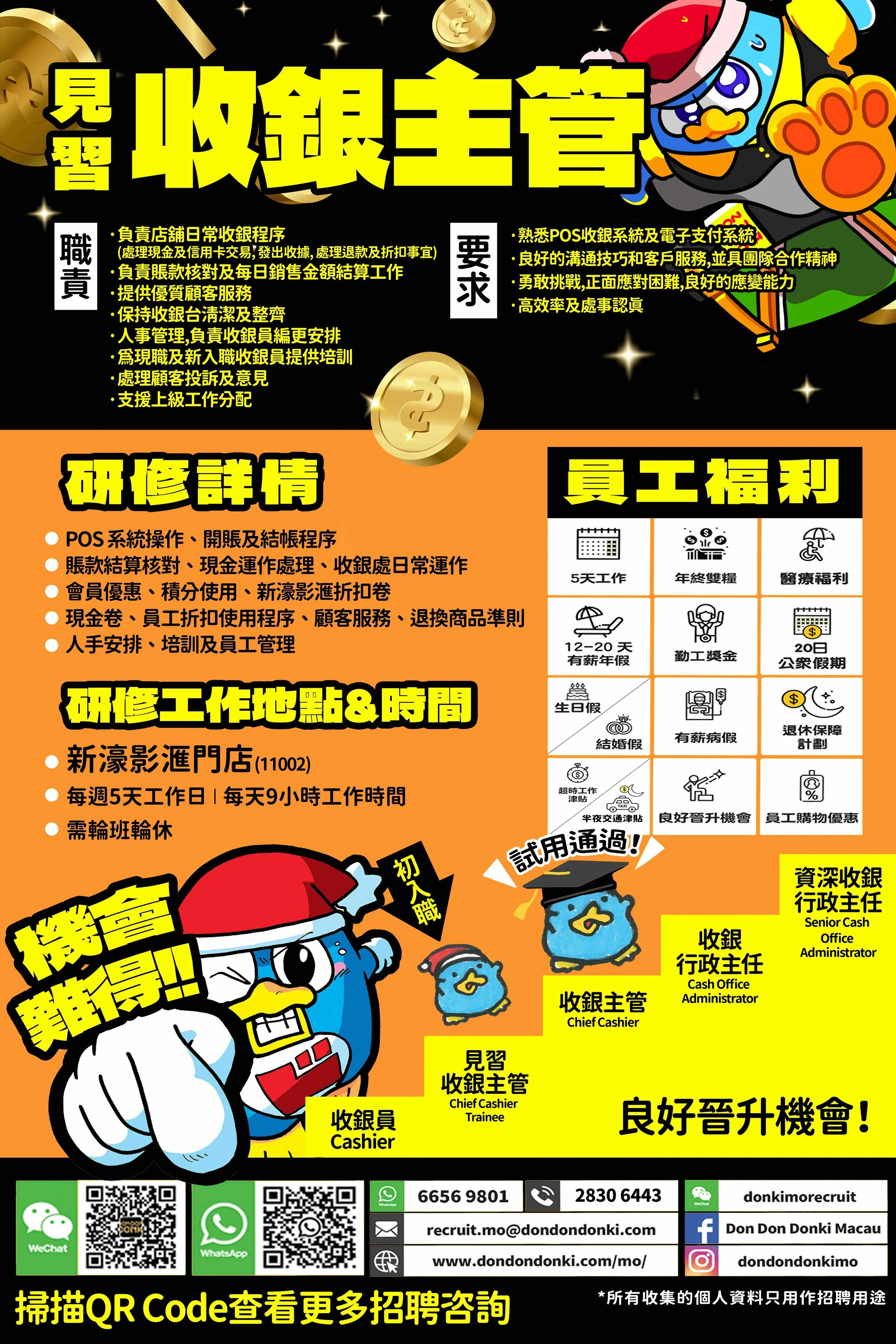 有興趣加入者,煩請將您的簡歷以及要求薪金,電郵至 recruit.mo@dondondonki.com