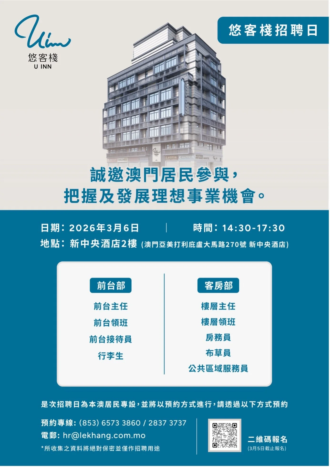 是次招聘日為本澳居民專設,並將以預約方式進行,請透過以下方式預約