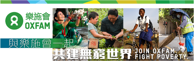 Join Oxfam Hong Kong, a member of the Oxfam confederation, in creating a world free of poverty. As an independent development and relief agency, we work with people living in poverty and partner organisations to implement effective development, humanitarian, policy advocacy, and public education programmes.