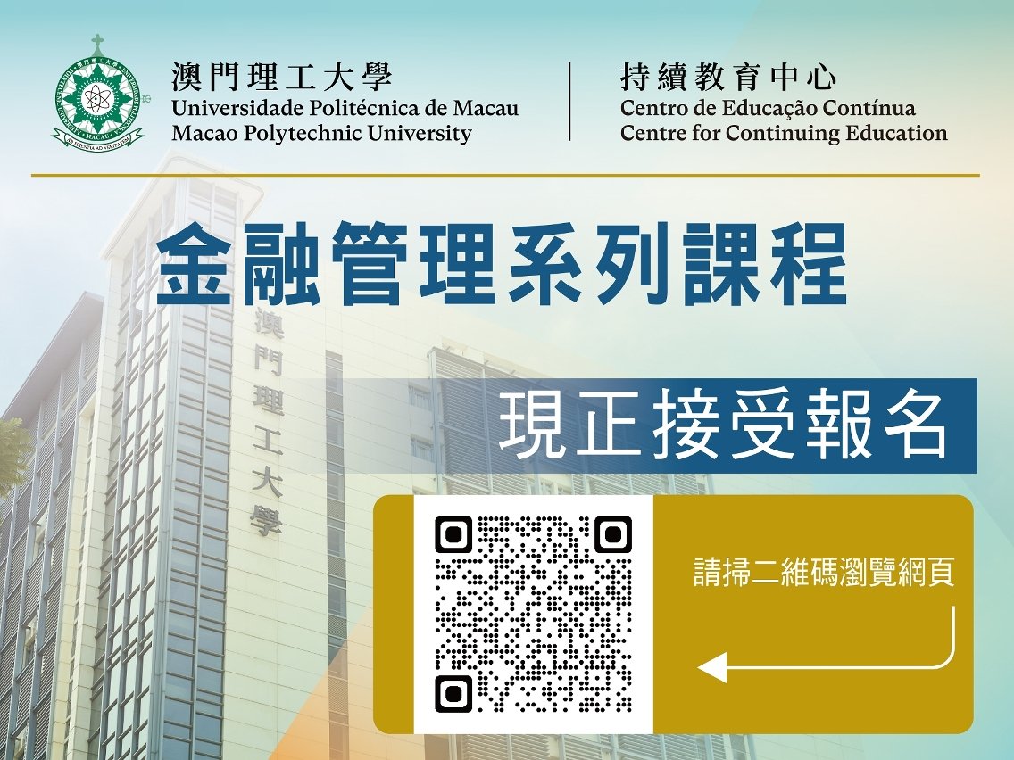 現代金融是澳門特區 “1+4” 經濟適度多元發展策略的重點產業之一,澳門理工大學持續教育中心為積極回應社會發展所需,培養金融產業所需人才。5月份起開設相關範疇課程:“金融科技與創新實踐”、“金融工具與市場應用”、“債券市場實務”、“金融投資理論與實務” 等課程,現正接受網上報名,適合金融從業人員、有意投身行業發展,以及對金融理論與實踐感興趣的人士報讀。