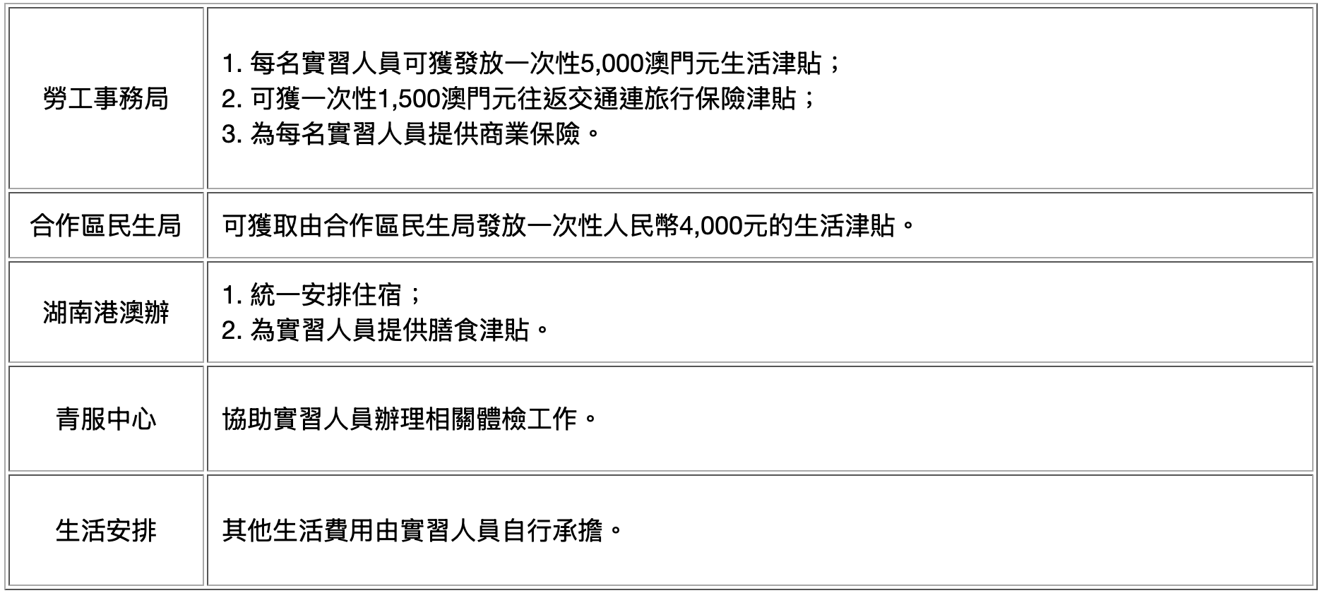 實習津貼及住宿等生活安排(詳見章程)