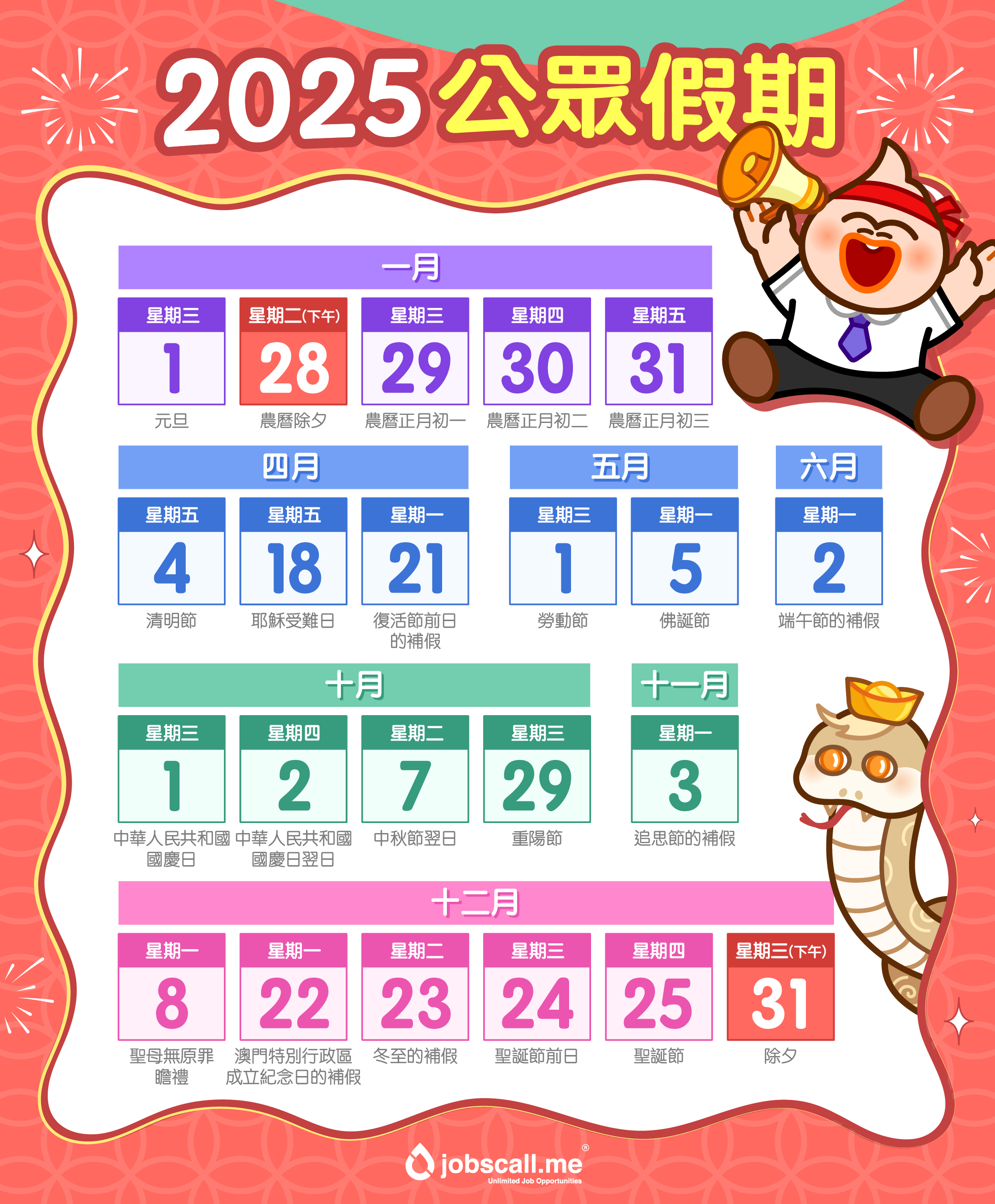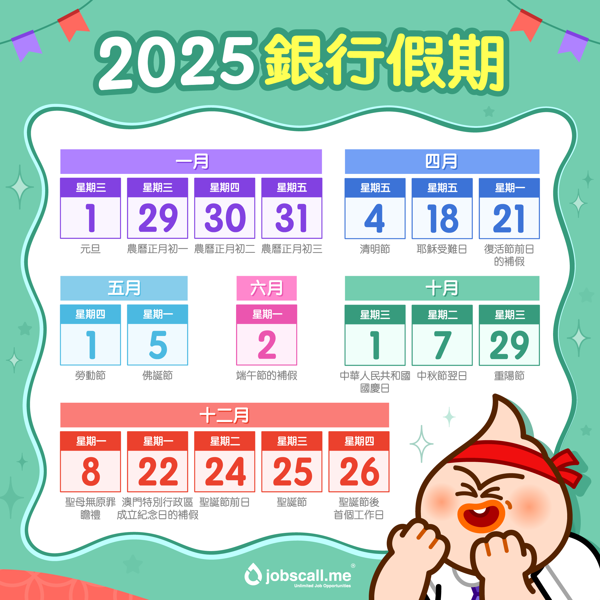 Industry Focus 職場資訊 2025 銀行假/公眾假期+請假攻略:請 1 放 9! Cavin Cheong · January 24, 2025 返工咁辛苦,最開心當然係睇幾時有假放~2025年(銀行假期)一覽: 2025年(公眾假期)一覽: 新一年,諗好去邊到旅行未?幫你準備了 2025 公眾假期的請假攻略,能夠「請最少假,放最長嘅日子去旅行」,同時又可以減少對工作影響。而請假攻略適用於五天工作制的朋友。若果你是需要輪班嘅朋友仔,當然要揀淡季平啲先去旅行喇。